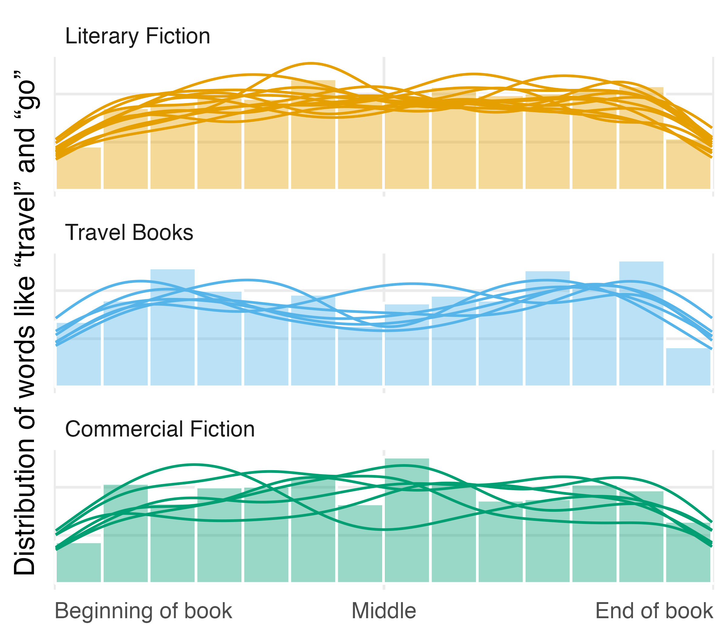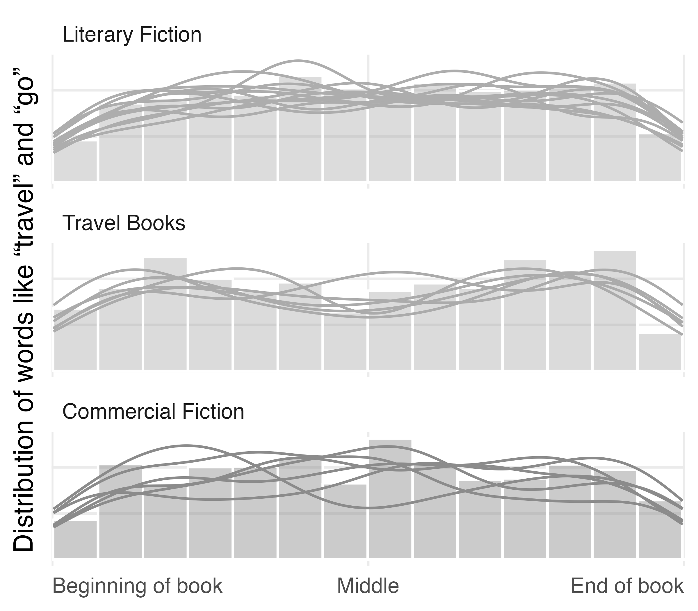 That missing second paragraph is crucial! Its introduction to Figure 4 sets up the third paragraph. Without a transition explaining the difference in method, the third paragraph seems to be devoted to Figure 3, describing it in ways (“travel books tend to have greater lexical diversity”) that directly contradict the first paragraph (“literary works draw from a larger vocabulary”). I’m pretty sad the middle paragraph got dropped.